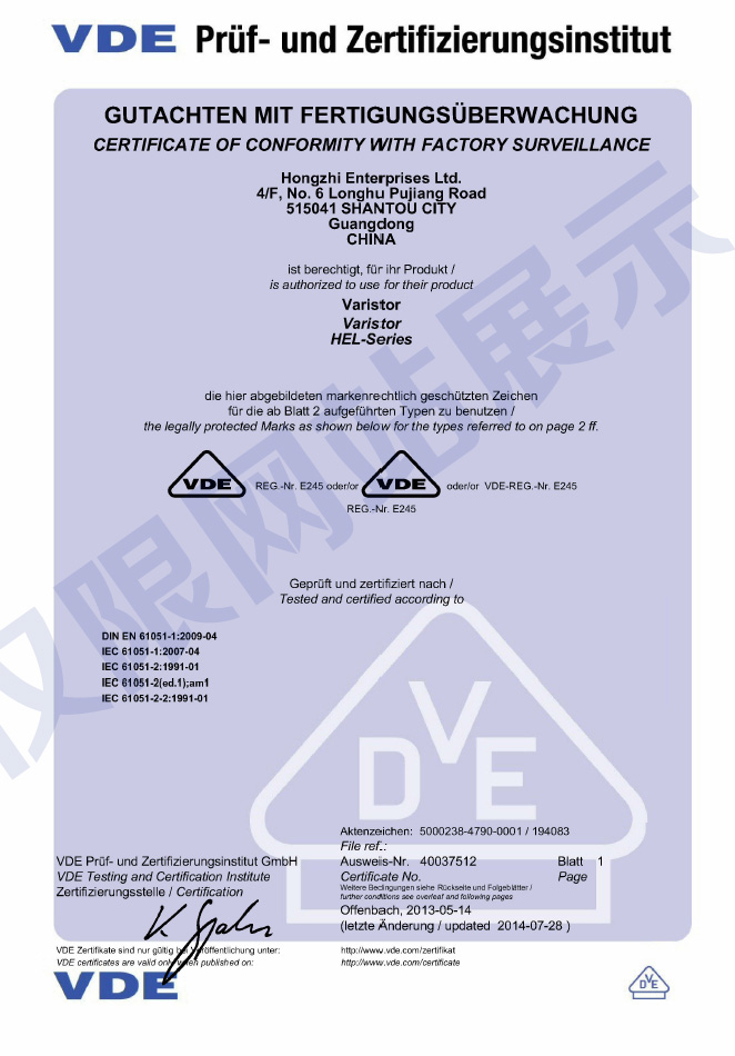 廣東鴻志電子科技有限公司成立于1993年,位于美麗的海濱城市汕頭,現(xiàn)已發(fā)展成為元器件制造集團企業(yè),生產(chǎn)壓敏電阻、NTC熱敏電阻、陶瓷電容和金屬化薄膜電容,通過了ISO9001質量體系認證和ISO14001環(huán)境體系認證,以及IATF16949汽車產(chǎn)品質量體系認證...